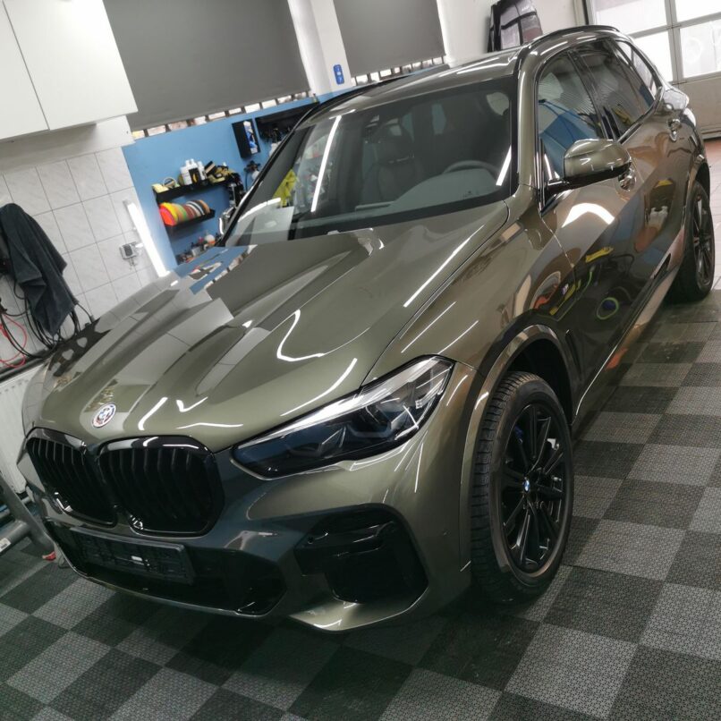 Kompleksową i dobrze zorganizowana akcja. Nowiutkie BMW X5, we wspaniałym oliwkowo metalicznym kolorze, trafiło do mnie prosto z salonu. Standardem staje się kiedy nabywca zamawiając auto w salonie jednocześnie umawia z firmą detailingową zabezpieczenie pojazdu bezpośrednio po odbiorze co obniża koszta (uszkodzenia lakieru, rysy)