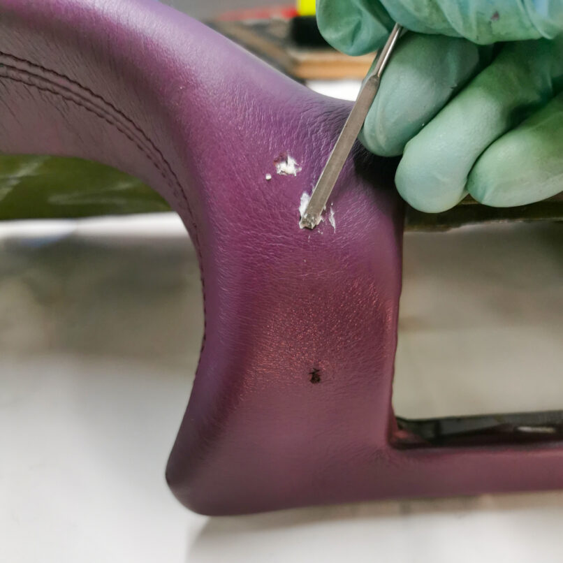 - Skórę poddałem renowacji i ponownemu lakierowaniu, co pozwoliło przywrócić jej oryginalny kolor, strukturę i fabryczny mat. Tutaj z pomocą przyszły produkty colourlock.