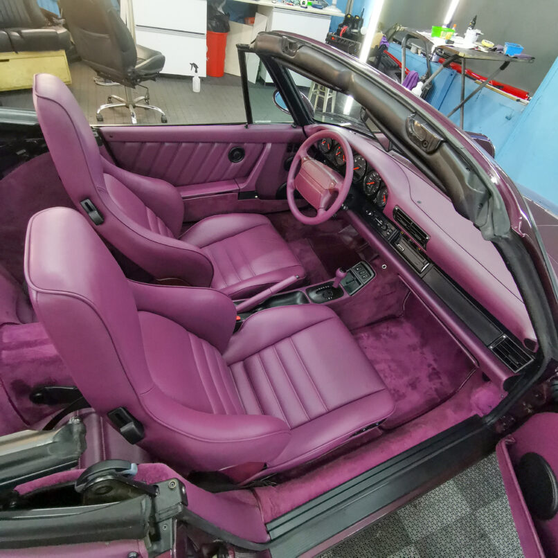Na mój warsztat trafił prawdziwy motoryzacyjny klasyk– Porsche 964 Carrera Cabrio w niezwykłym, wiśniowo–fioletowym kolorze niczym marynarki duetu Milli Vanilli. Auto z początku lat 90tych., ikona stylu i inżynierii, które przez ponad trzy dekady nosiło na sobie ślady użytkowania i czasu. Jego wnętrze, w całości wykończone skórą, wymagało gruntownej renowacji, aby odzyskać dawną świetność i charakter.