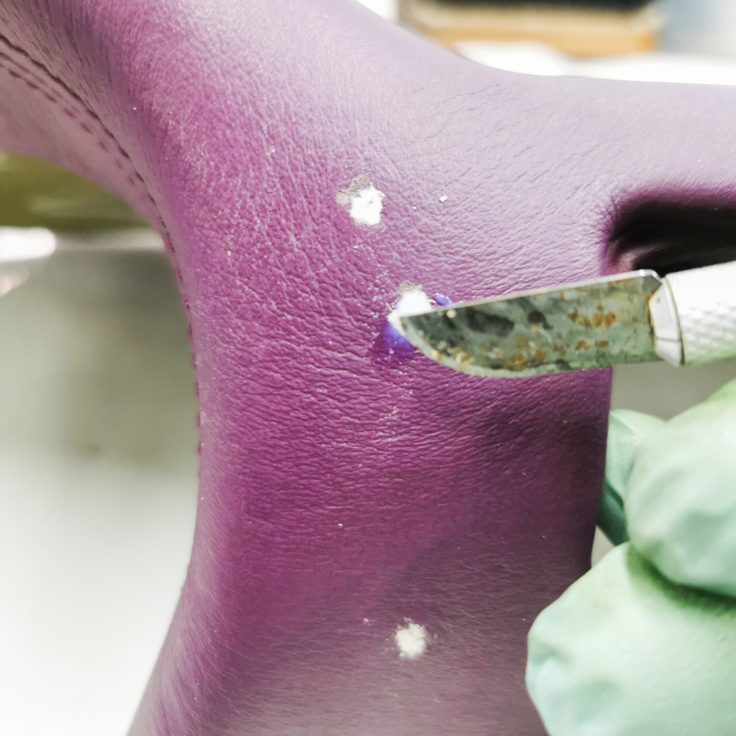 - Skórę poddałem renowacji i ponownemu lakierowaniu, co pozwoliło przywrócić jej oryginalny kolor, strukturę i fabryczny mat. Tutaj z pomocą przyszły produkty colourlock.