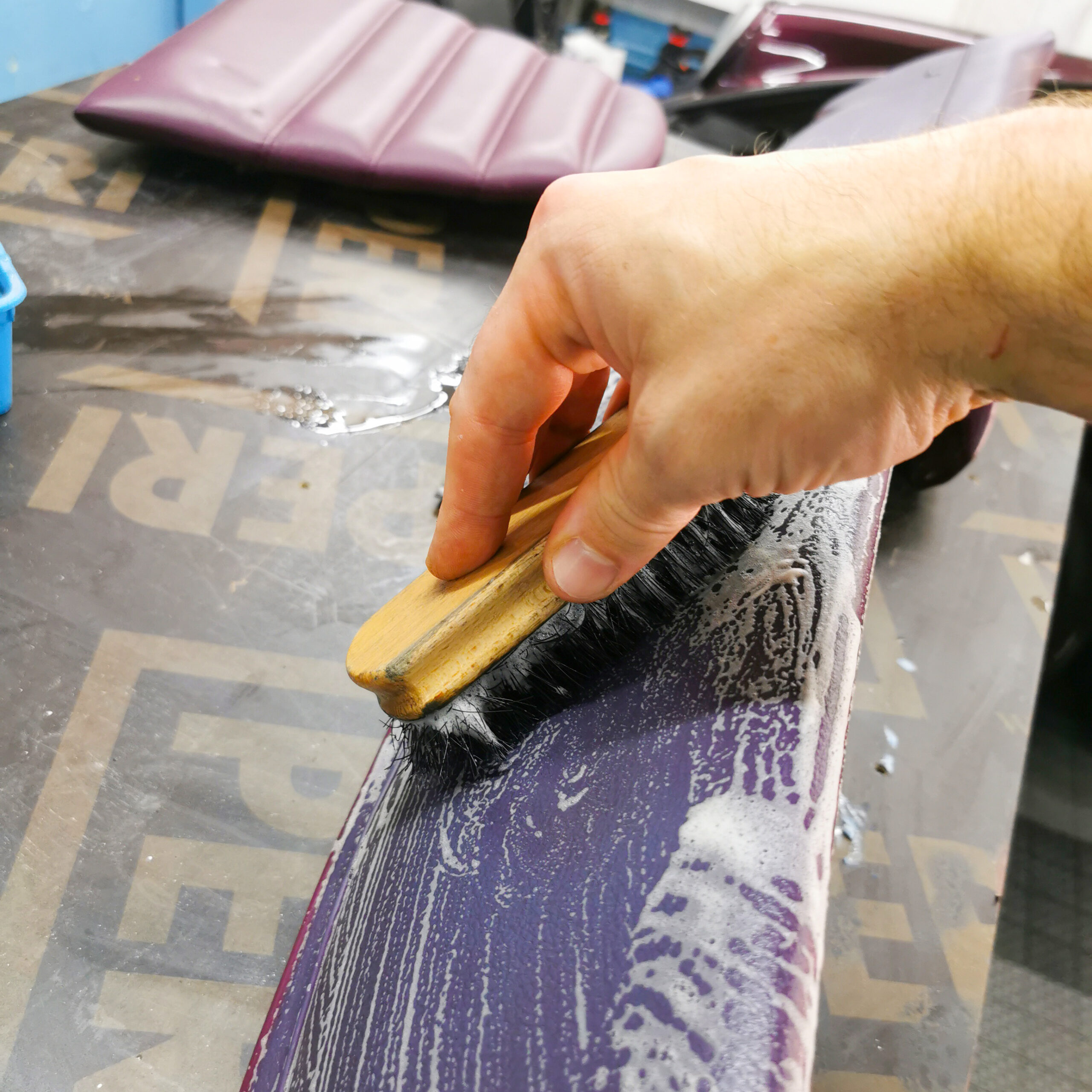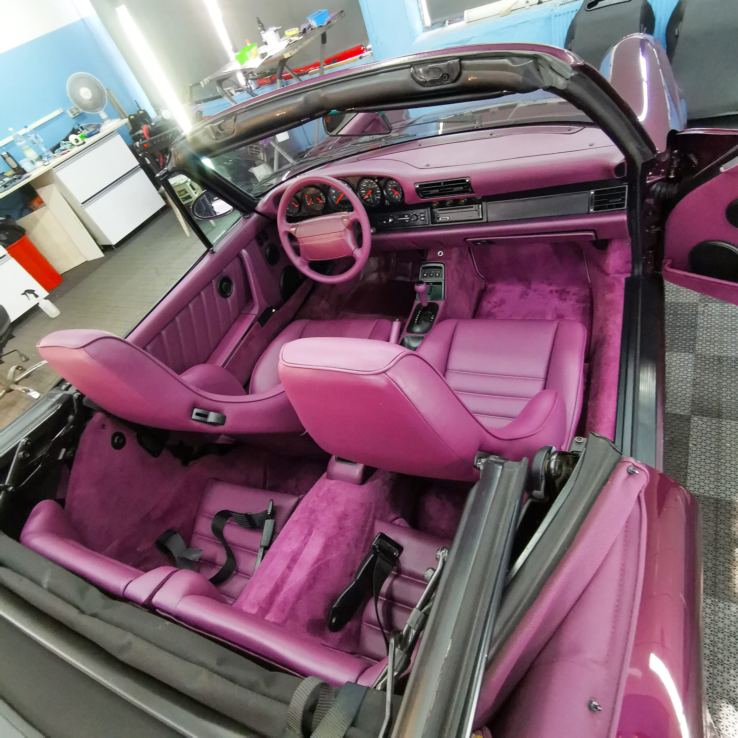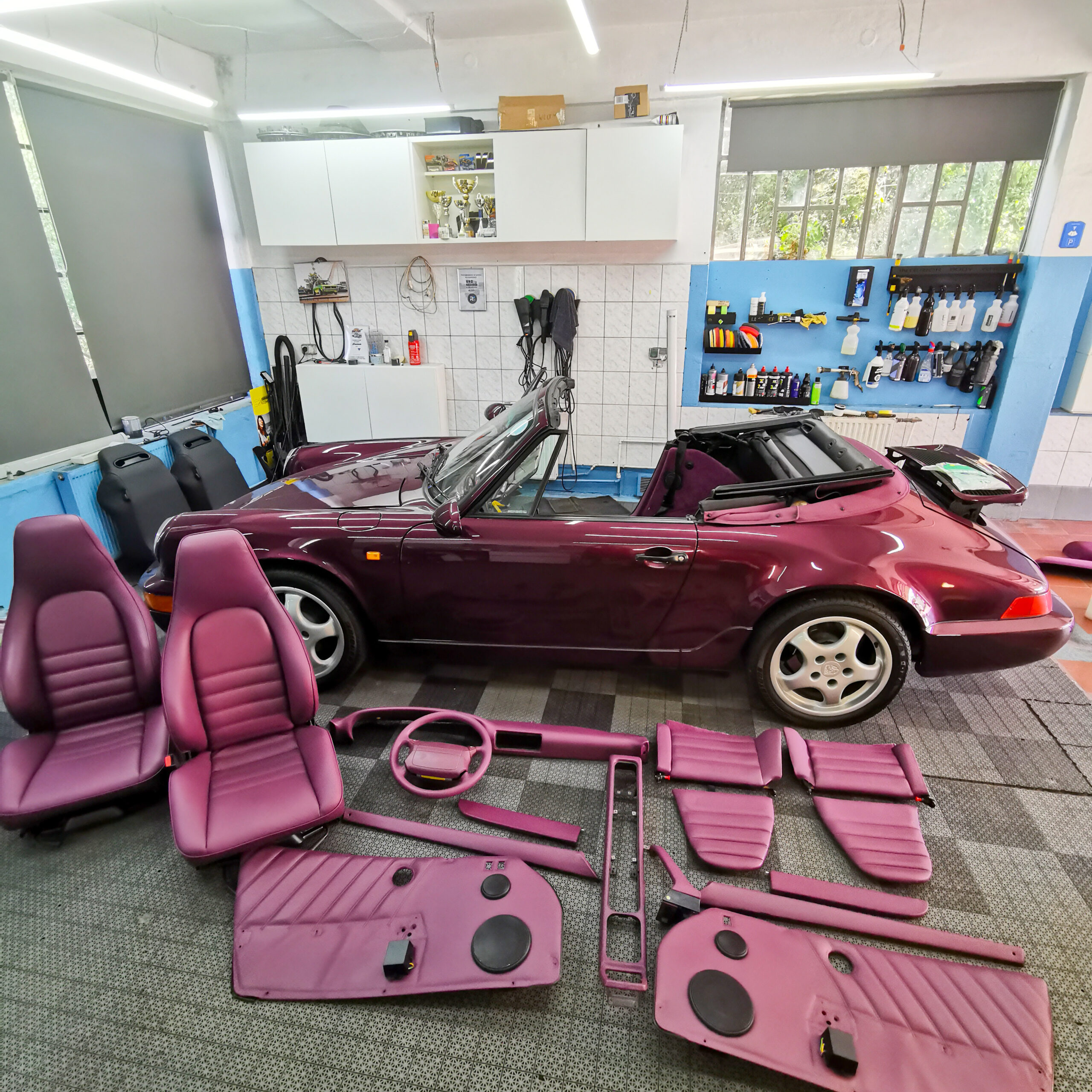 Na mój warsztat trafił prawdziwy motoryzacyjny klasyk– Porsche 964 Carrera Cabrio w niezwykłym, wiśniowo–fioletowym kolorze niczym marynarki duetu Milli Vanilli. Auto z początku lat 90tych., ikona stylu i inżynierii, które przez ponad trzy dekady nosiło na sobie ślady użytkowania i czasu. Jego wnętrze, w całości wykończone skórą, wymagało gruntownej renowacji, aby odzyskać dawną świetność i charakter.