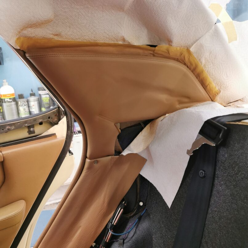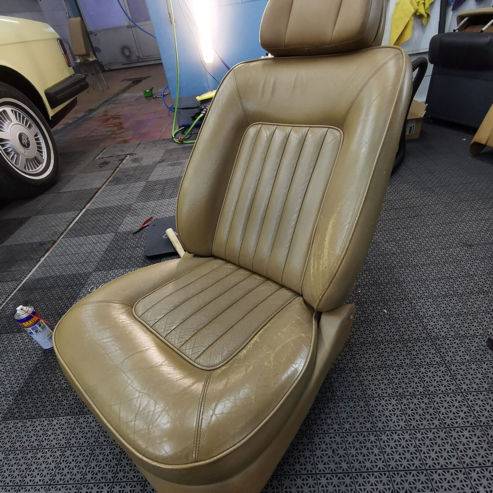 Skóra, mimo swojej jakości, wymagała profesjonalnej renowacji tapicerki skórzanej oraz kilku punktowych napraw. Każdy element w takim aucie jest unikatowy, wykonany ręcznie, „na zamówienie” — dlatego każda restauracja wymaga precyzji, cierpliwości i pełnej odpowiedzialności.