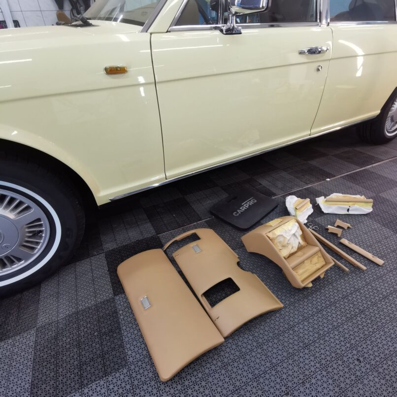 Właśnie z powodu tapicerki skórzanej ponad 30-letni Rolls-Royce Silver Spur trafił do mojej pracowni auto detailingu i renowacji skór.