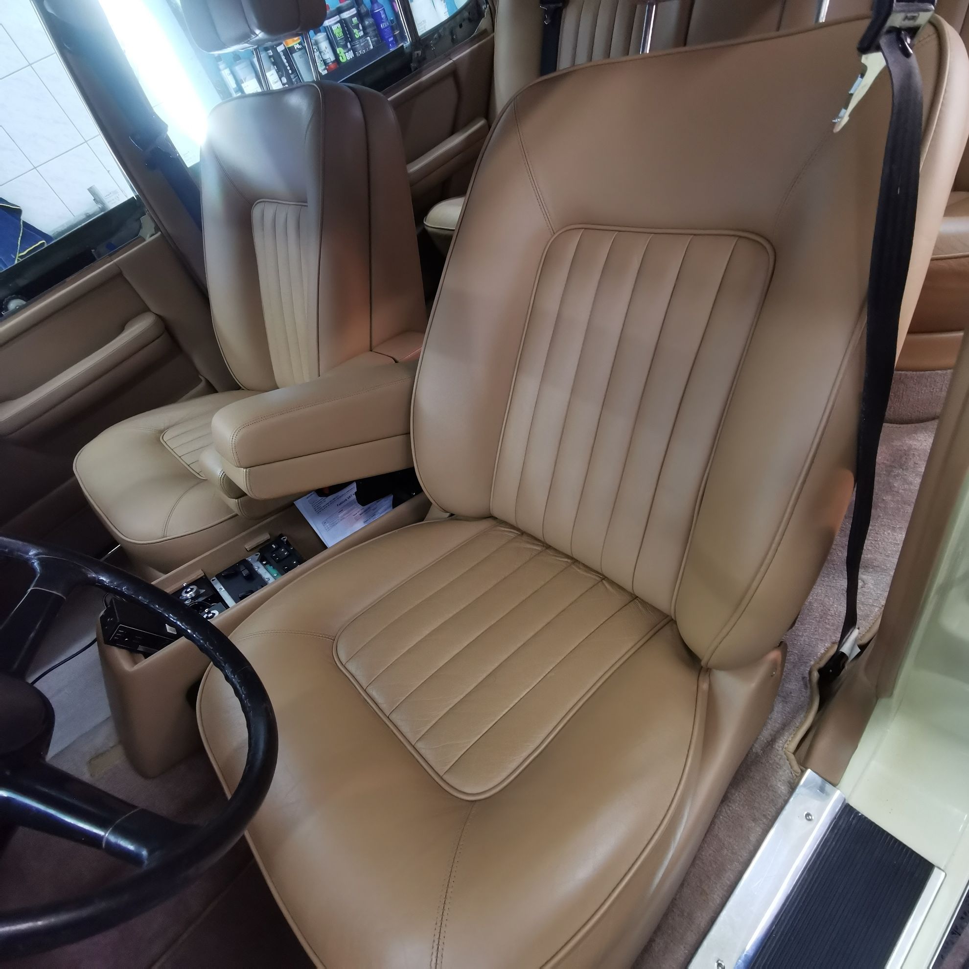 Skóra, mimo swojej jakości, wymagała profesjonalnej renowacji tapicerki skórzanej oraz kilku punktowych napraw. Każdy element w takim aucie jest unikatowy, wykonany ręcznie, „na zamówienie” — dlatego każda restauracja wymaga precyzji, cierpliwości i pełnej odpowiedzialności.